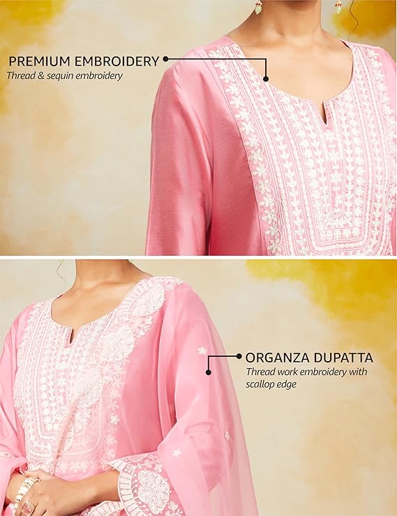 Amazon Brand – Myx Women’s Kurta Pant Set with Embroidered Organza Dupatta | Viscose,Rayon | A-line fit
