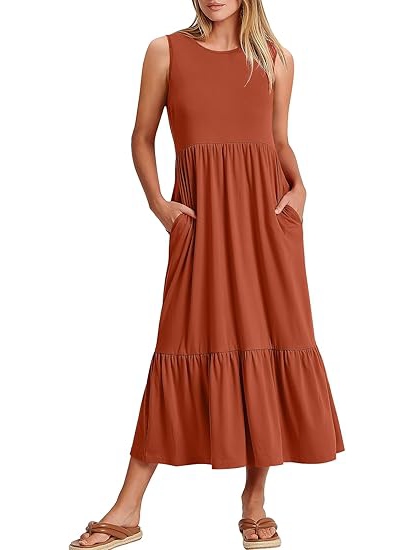 ANRABESS Women Summer Casual Sleeveless Crewneck Sundress Aline Flowy Tiered Maxi Long Beach Dress Vacation Outfits