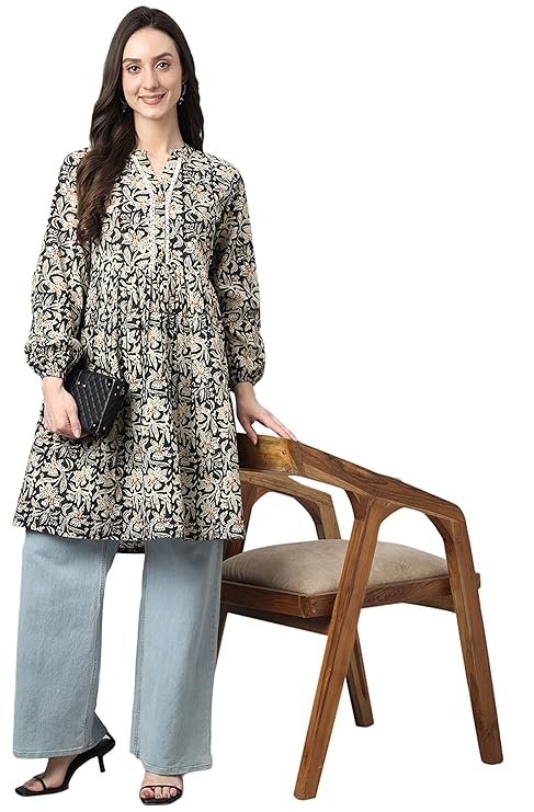 Be the first to review “Janasya Women’s Black Cotton Floral Print Flared Tunic” Cancel reply