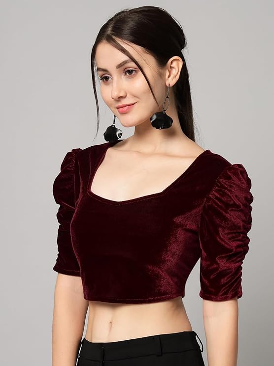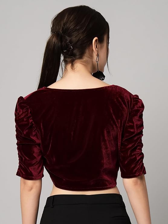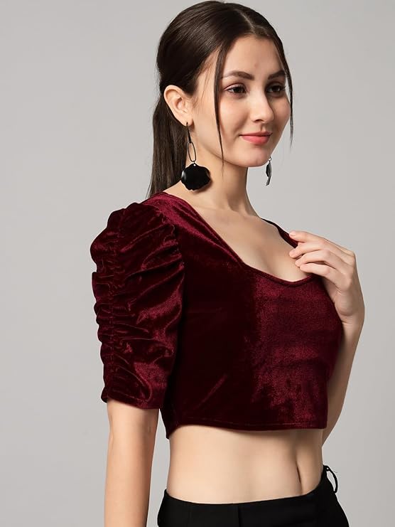 Vaararo Velvet Blouse Tops for Women | Party Puff Sleeves Readymade Outfit